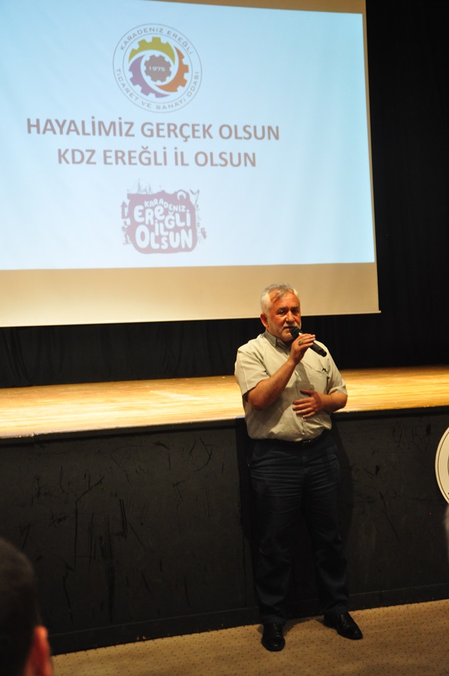 “Hayalimiz Gerçek Olsun Kdz.Ereğli İl Olsun” mottosuyla Kdz.Ereğli Ticaret ve Sanayi Odası önderliğinde Tatoğlu Kültür Merkezinde bir toplantı gerçekleştirildi