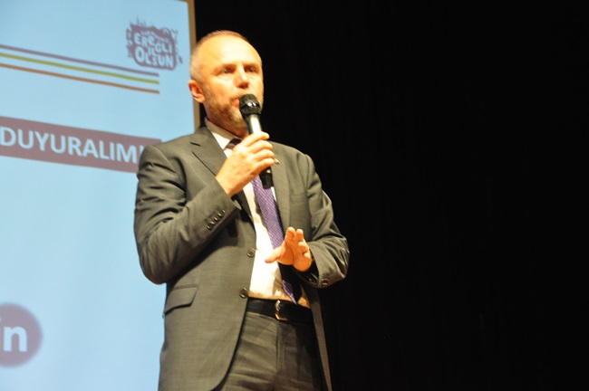 Kdz. Ereğli'yi sevmek sadece seviyorum diye bağırmakla olmaz. Büyük bir hassasiyetim var. Bizden sonra gelen nesle hassasiyetim var. Kdz. Ereğli'nin geleceğine hassasiyetim var. Allah yolumuzu açık etsin. Allah yardımcı olsun. Şartlar bize yardımcı olur milletvekillerimiz, siyasetçiler bize yardımcı olurlar inşallah. Onların önderliğinde bütün siyasi önderliğinde inşallah bu başarıyı sağlarız. Çocuklarımıza, torunlarımıza karşı başımız dik olur inşallah.