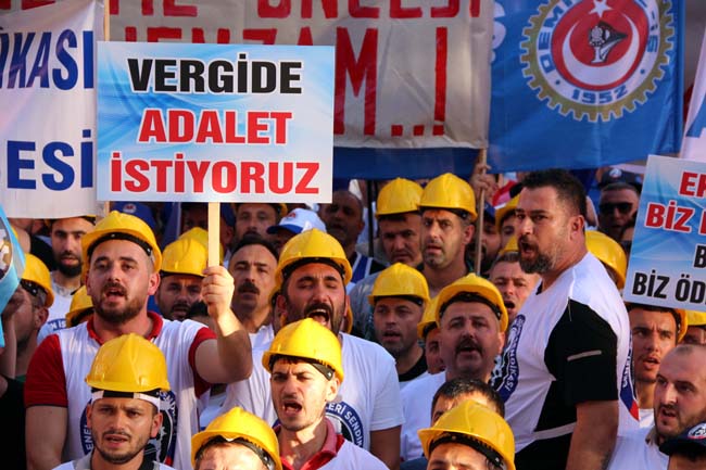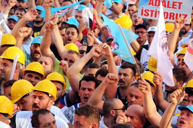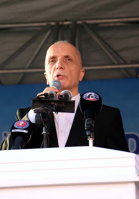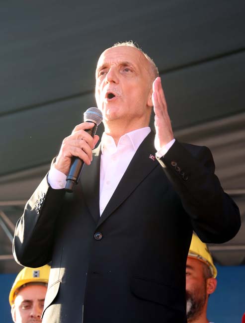 TÜRK-İŞ Genel Başkanı Ergün Atalay’ın mitingde gerçekleştirdiği konuşması sık sık işçilerin sloganlarıyla kesildi.