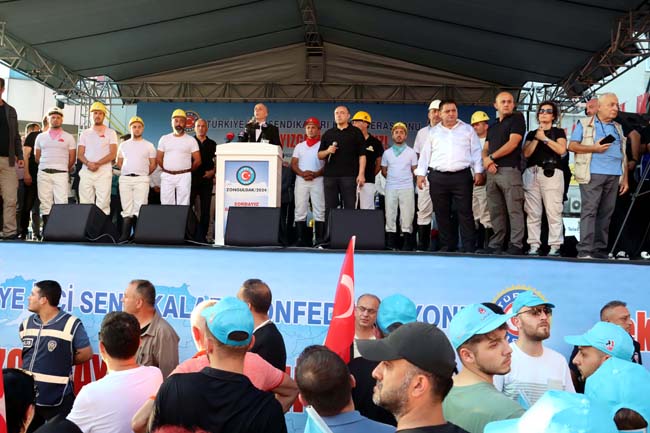 Genel Maden İşçileri Sendikası (GMİS) ev sahipliğinde yapılan TÜRK-İŞ mitingine CHP Genel Başkan Yardımcısı ve Zonguldak Milletvekili Deniz Yavuzyılmaz, CHP Milletvekili Eylem Ertuğrul, Zonguldak Belediye Başkanı Tahsin Erdem, eski milletvekilleri, TÜRK-İŞ’e bağlı Sendikaların Genel Başkanları ile Genel Merkez ve Şubeler Yöneticileri, Kozlu Belediye Başkanı Altuğ Dökmeci, CHP İl ve ilçe başkanları, TMMOB Temsilcileri, KESK Temsilcileri, Vatan Partisi ve Sol Parti ile çok sayıda sivil toplum örgütlerinin temsilcileri ile TÜRK-İŞ’e bağlı sendikalara üye binlerce işçi katıldı.