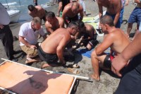 olduğu noktaya gelerek denizin dibine dalış yaptı. Genci dipte bulan