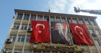 isminin Burhan Güllü olduğu öğrenilen bir kişi, Devrek Belediyesinin çatısına