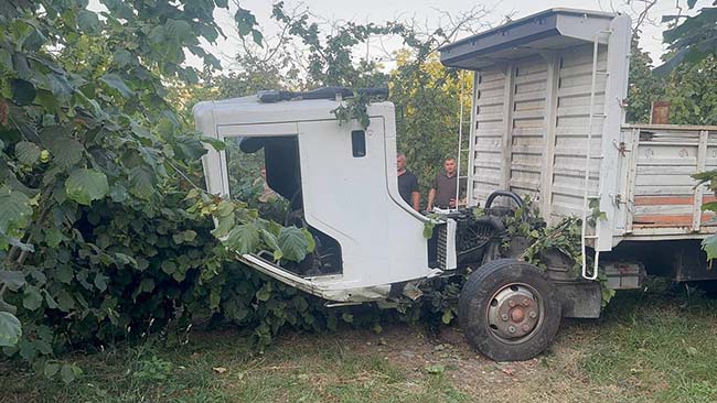 Zonguldak'ın Alaplı ilçesinde kupası çıkınca kontrolden çıkan kamyonet, fındık bahçesine uçtu. Kazada araçtan fırlayan sürücü hayatını kaybetti.