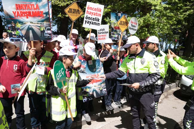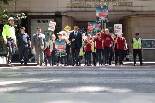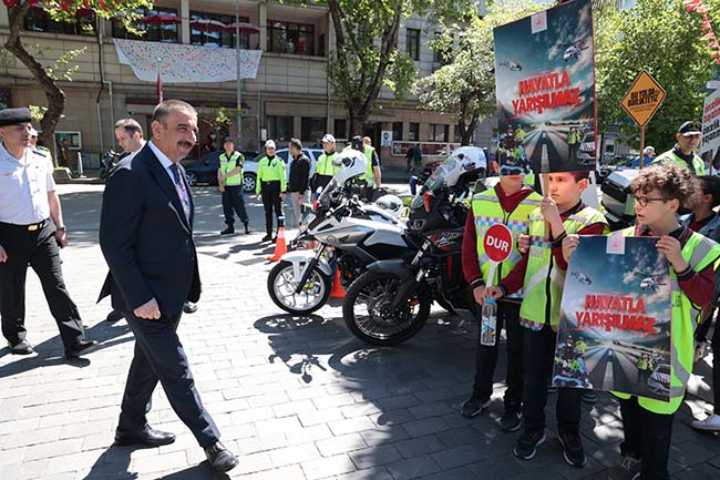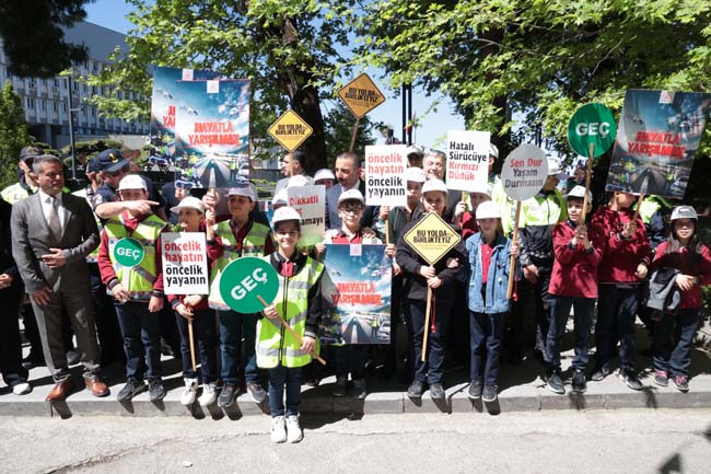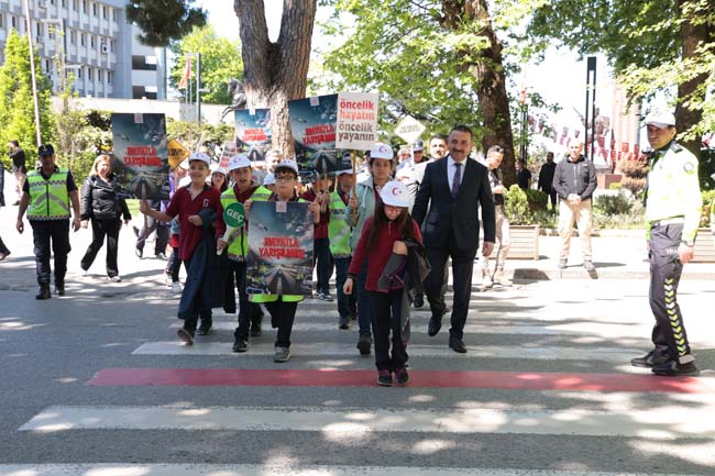Vali, Osman Hacıbektaşoğlu, yaya geçidinde toplumun dikkatini çekmek için ilköğretim seviyesindeki bir grup öğrenci, emniyet ve jandarma personeliyle bir araya geldi. Katılımcılar, “Öncelik Hayatın, Öncelik Yayanın”, “Sen Dur Yaşam Durmasın” gibi yayaların can güvenliğinin önemini vurgulayan ve 2024 Trafik Haftası sloganı olan “Hayatla Yarışılmaz” pankartlarını taşıyarak yaya geçidini kullandı.