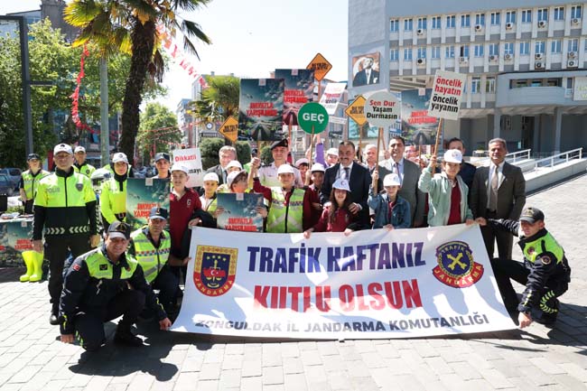 Zonguldak Valisi Osman Hacıbektaşoğlu himayelerinde Trafik Haftası kutlama etkinlikleri kapsamında Valilik Hizmet Binası önündeki yaya geçidinde, yayaların güvenliği ve trafik kurallarına uyulması konusunda farkındalık oluşturulması hedeflenen "Yayalar Kırmızı Çizgimiz" etkinliği düzenlendi.