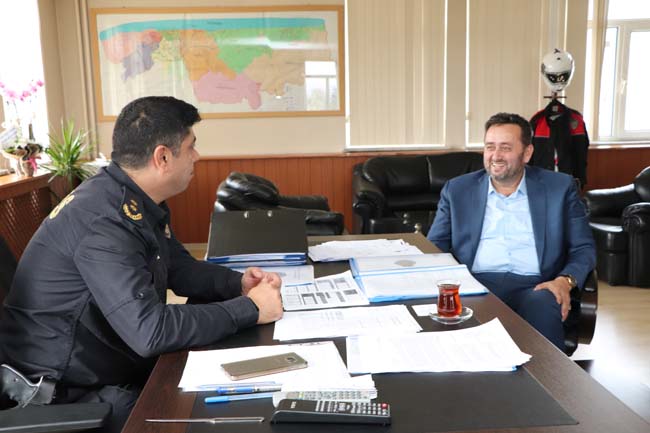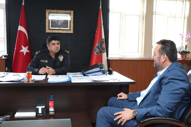 Akçakoca Belediye Başkanı M. Okan Yanmaz, görevine yeni başlayan İlçe Emniyet Müdürü Fatih Ünsal'ı makamında ziyaret ederek, hayırlı olsun dileklerinde bulundular.