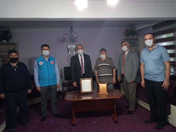 Zonguldak'ın Çaycuma ilçesinde "Bir İyilik, Sıcak Bir Yuva" sloganıyla başlatılan iyilik konutlarından yaptıran hayırsever çifte, İlçe Müftülüğü tarafından plaket verildi.