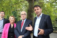 çarşı merkezindeki bürosunun önüne gelerek ellerinde çiçek ve pankartlarla iş