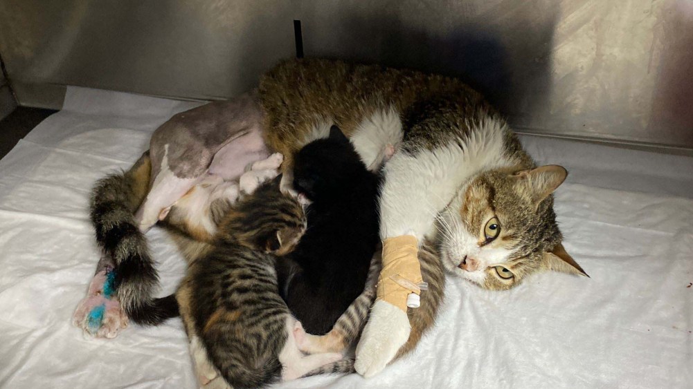 Veteriner Hekim Önder Alkan, “Ayağının üzerine tuğla düştü, ayağı parçalanıyor. Daha sonra hastamız doğum yapıyor. Ara içerisinde ayak tedavi edilmeye çalışıyor. Tedavi de başarılı olmuyor alçı falan takılıyor. Yeni bir tomografi tetkikleriyle kırıkların nasıl olacağını ne yapılabileceğini tespit ettik. Operasyona aldık, 4 tarak kemiği kırılmıştı. Kemikler parçalanmıştı. Tomografinin de bize verdiği kolaylıkla ameliyata aldık. Ameliyat sonrası kedimiz şu anda basmaya başladı. Ayak kısaca kesilmekten kurtuldu. Şu anda yavrularına bakıyor gayet sağlıklı. Bugün taburcu edeceğiz. Sokak hayvanı bakan arkadaşlar var. İlgilendikleri için teşekkür ediyoruz. Sokakta kalmış olsaydı telef olacaktı. Bir uzvunun kesilmesi ile alakalı belli kriterler var. Tuğlanın çok büyük olması, orada ki dokunun tamamen bozulması, damarların ve sinirlerin hasar görmesi, o bölgeye tutan kemiklerin tamamen kırılması, tek kırık olmaması. Bu ileri görüntüleme teknikleri gerektiriyor. Bu tetkikleri yaptıktan sonra ameliyata alıp kurtarılıp, kurtulamayacağına karar veriyorsunuz. Yoksa normal bir röntgenle bu iş maalesef olmuyor” dedi.