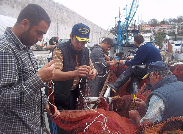 Denize açılmayı planlayan balıkçılar, denizdeki fırtınanın dinmesini dalgaların durulmasını bekliyor. Bayram ziyaretleri dolayısıyla balığa çıkmadıklarını belirten bir balıkçı, "Yakınlarımızı ve mezarları ziyaret ettik. Şimdi de hava rüzgarlı. Bayram bitiminde inşallah ava çıkarız. Söküklerimizi dikiyor, eksikleri tamamlıyoruz. Her zaman balık olmuyor ama balık işi belli olmaz" dedi. Ağlarını tamir eden balıkçılardan bazıları ise sorunlarına gerekli ilginin gösterilmediğini söyleyerek, balıkçılık bakanlığı kurulmasını istedi. Orman Bakanlığı'nın balıkçılıktan anlamayacağını savunan balıkçı, şöyle konuştu: "Denizi bilen birinin bakan olması lazım. Orman bakanı ağaçtan anlar, denizden anlamaz. Balıkçıların bir ton sıkıntısı var. Boyut yasağı, yer yasağı gibi sorunlar var. Balıkçılar aç. Seminerler toplantılar var ama hikaye. Balıkçıları ve sorunlarını düşünen yok."