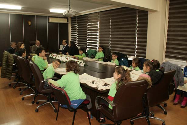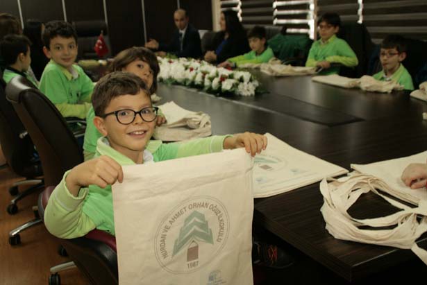 Karadeniz Ereğli Nurdan ve Ahmet Orhan Oğuz İlkokulu Eko Okullar Programı kapsamında, okul idareci ve öğretmenleri ile ilkokul öğrencileri Kaymakam İsmail Çorumluoğlu'nu ziyaret etti. Öğrenciler ziyarette kaymakamlık personeline 1 Ocak'tan itibaren başlayacak olan marketlerde poşet yasağı uygulamasına destek amaçlı bez torba dağıtımında bulundu.