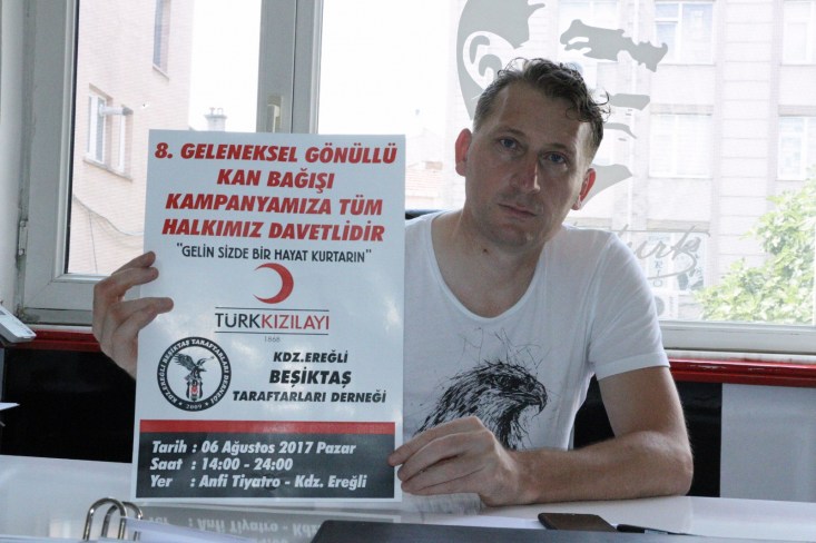 Zonguldak'ın Ereğli ilçesi Beşiktaş Taraftarları Derneği Başkanı Tarkan Adik, üyelerini ve bölge halkını 6 Ağustos 2017 Pazar günü yapılacak olan 8. Geleneksel Kan Bağışı kampanyasına davet etti. Adik ayrıca, Pazar akşamı Beşiktaş ile Konya spor arasında oynanacak olan Süper Kupa maçını da kan bağışının yapılacağı amfi tiyatroda dev ekranda izleyeceklerini ifade etti.