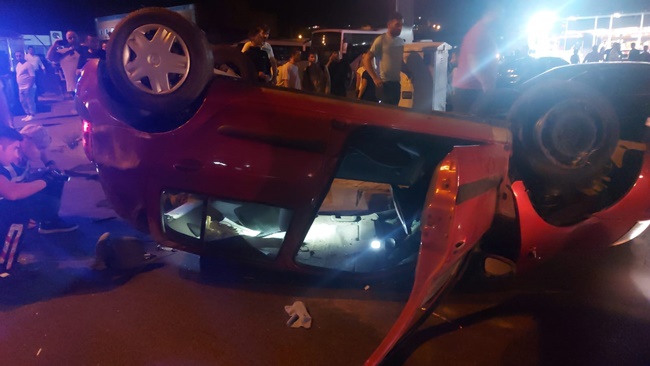 Ahmet Erdal S. idaresindeki otomobil, sürücüsünün bir anlık dikkatsizliği sonucu takla atarak karşı şeride geçti. Kazada sürücü Ahmet Erdal S. ile otomobilin çarptığı yaya Miraç Ö. yaralandı. Olay yerine sevk edilen sağlık ekipleri yaralılara yaptıkları müdahalenin ardında çeşitli hastanelere kaldırdı. Yaralıların tedavisine başlanırken, trafiğe kapanan yolun açılması için çalışma başlatılırken, kaza ile ile ilgili de soruşturma başlatıldığı öğrenildi.