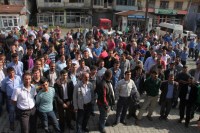 binası önünde Türkiye Taş Kömürü Kurumu (TTK) işçilerinin de destek verdiği