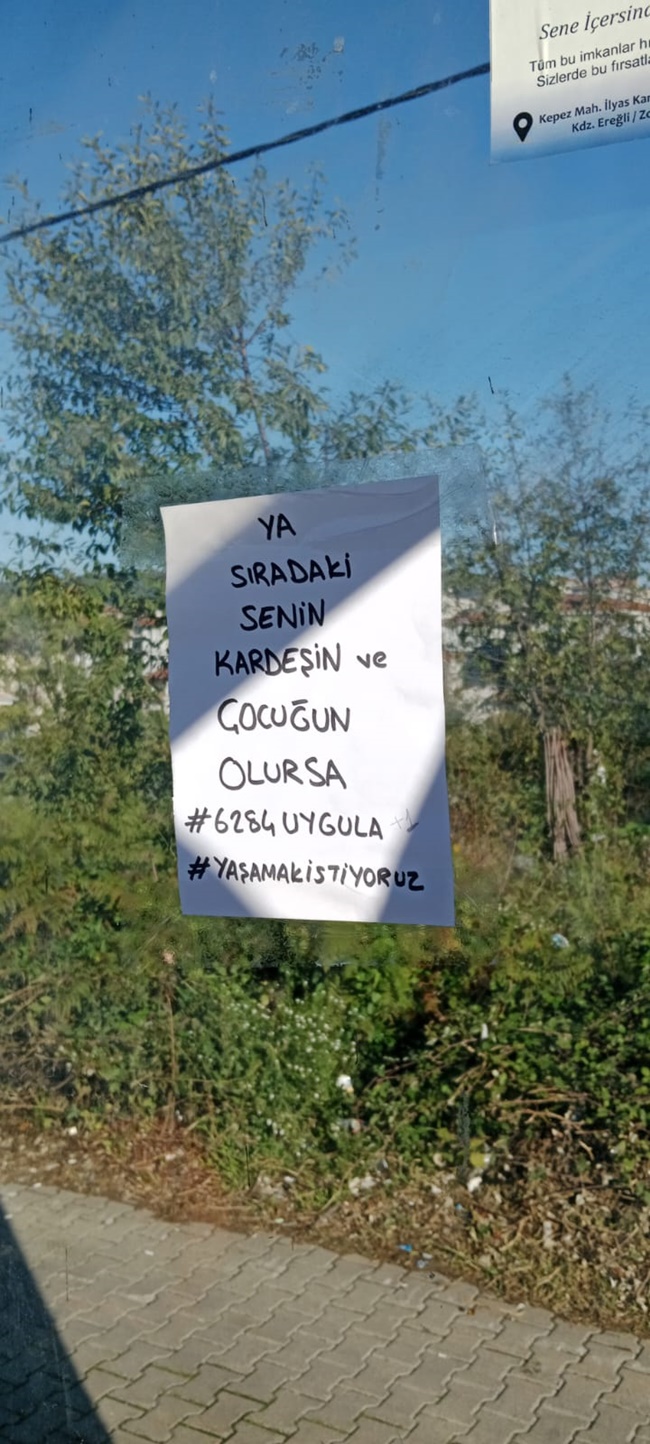 Türkiye genelinde ve Ereğli’de yaşanan küçük yaştaki çocuklara cinsel taciz ve ve cinayet girişimleri ile ilgili olayların artması sonrasında Ereğli’de bazı duraklara yazılar asılmaya başlandı. Otobüs duraklarına asılan kâğıtlarda “Ya sıradaki senin kardeşin ve çocuğun olursa, #6284 uygula ve #YAŞAMAK İSTİYORUZ” yazıldı.