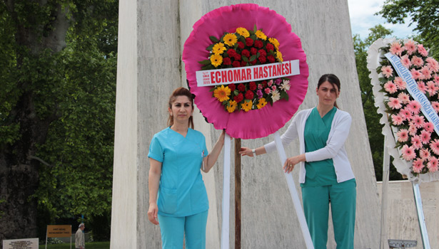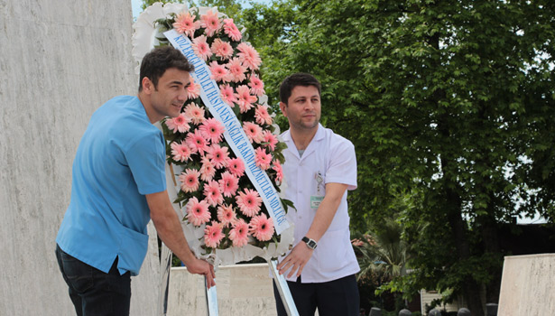 Çelenk sunma törenine Karadeniz Ereğli Devlet Hastanesi Sağlık Bakım Hizmetleri Müdürü Dilek Arslan, Özel Echomar Hastanesi Başhekimi Dr. Nevzat Çimenoğlu, Devlet Hastanesi Sağlık Bakım Hizmetleri Müdür Yardımcısı Nilüfer Uzun, Devlet Hastanesi, Özel Anadolu Hastanesi ve Özel Echomar Hastanesi ile 112 Acil Servis çalışanları katıldı.