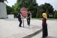 Atatürk Anıtı'na çelenk sunumunun ardından Saygı duruşunda bulunuldu. İstiklal