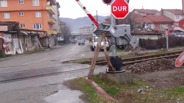 geçtiği bölgede tren gelmeden bariyerlerin kapanması ve tren gittikten sonra
