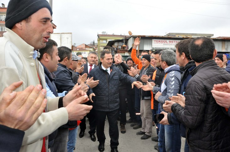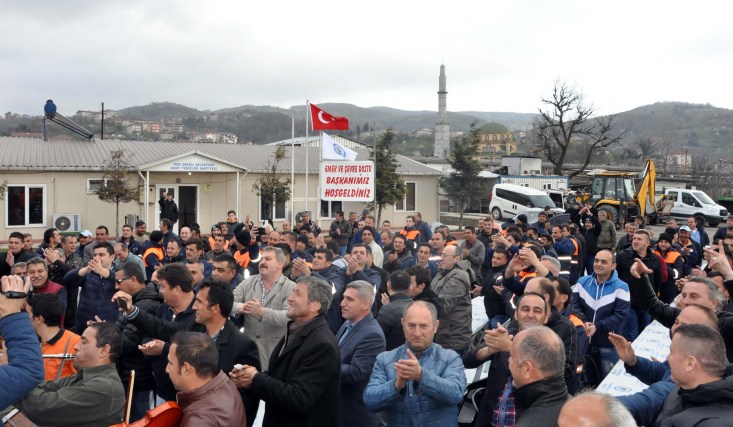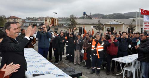 Şantiyeye girişte, konfeti, davul-zurna ve alkış ve sloganlarla karşılanan Başkan Uysal, çalışanlarıyla gurur duyduğunu belirtirken, işçiler, 'En büyük başkan bizim başkan', 'Ereğli seninle gurur duyuyor' sloganı atarken, Başkan Uysal'da bu sloganlara, 'Ereğli sizlerle gurur duyuyor' karşılığını verdi.