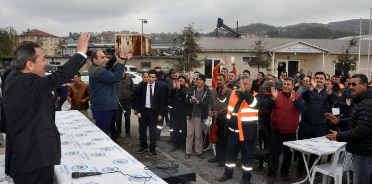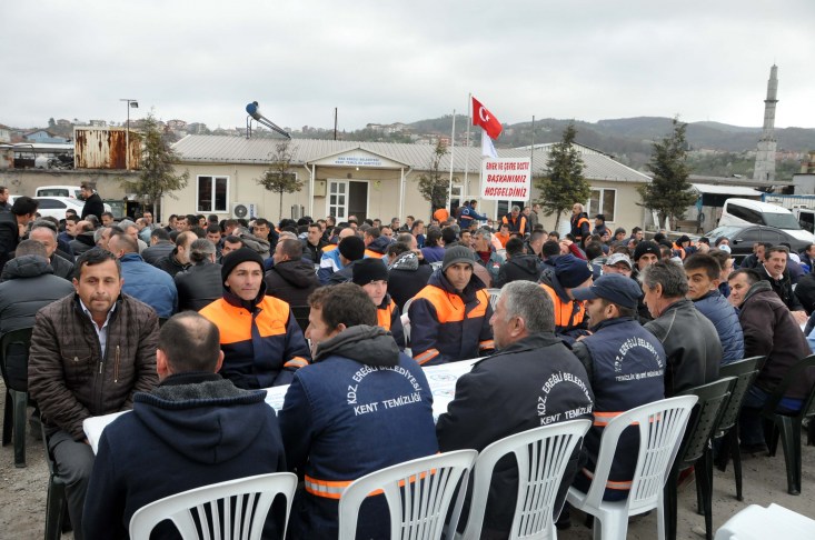Karadeniz Ereğli Belediye Başkanı Hüseyin Uysal, Temizlik İşleri Şantiyesi'ndeki çalışanlarla da akşam yemeğinde bir araya geldi.