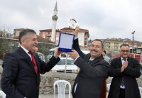 Başkan Uysal'a Temizlik İşleri Müdürü Namık Şahin bir plaket verirken, yemeğe, Başkan Yardımcıları Esra Alpago, Hüseyin Ağlar, Atilla Bulak ve Temizlik İşleri Müdürü Namık Şahin ve müdürlük personeli katıldı.