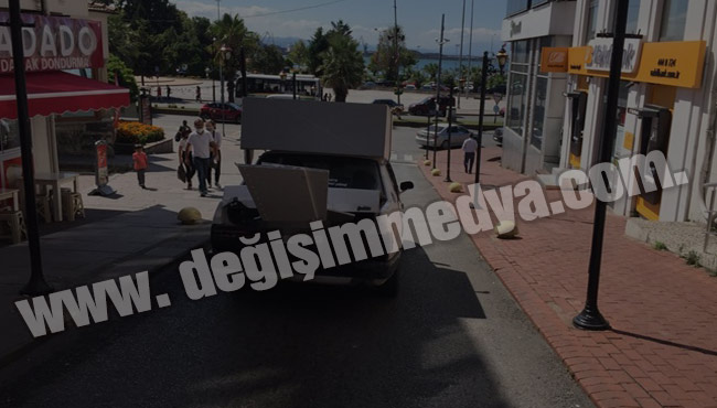 Ereğli şehir merkezinde aracının tavanına ve bagajına yüklediği eşya ile trafikte seyir eden araç sürücüsü objektiflere yansıdı. Genellikle yapılan modifiye ile dikkat çeken araç bu kez yük ve eşya taşırken objektiflere yansıdı.