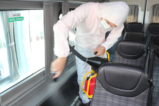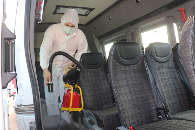 Zonguldak’ın Ereğli ilçesi Umum Servis Araçları Derneği Başkanı Muhammet Başkan, okulların açılması ile birlikte servis araçlarında her gün dezenfekte çalışmasının yapıldığını ve öğrencilerin servise binerken sosyal mesafe, hijyen ve maske kurallarına uymaları konusunda gerekli tüm önlemlerin alındığını ifade etti.