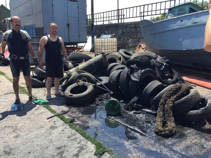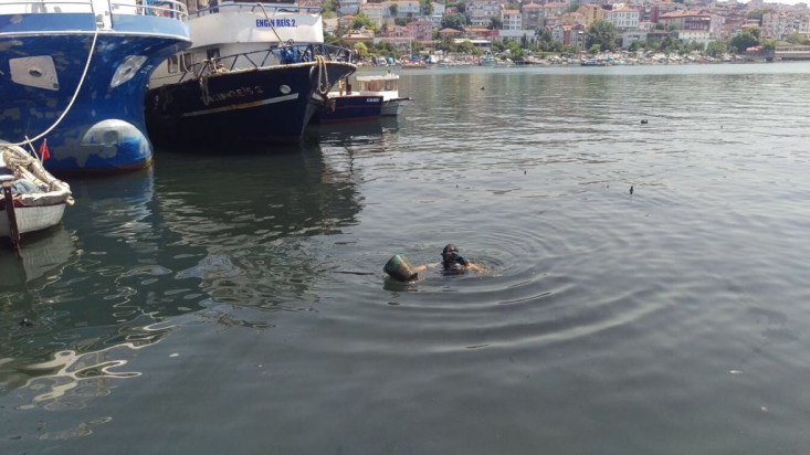 edildi. Bozahane balıkçılarında oluşan dalgıçların temizlik yaptığı balıkçı