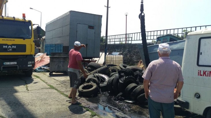 Zonguldak'ın Ereğli ilçesi Bozahane mevkiinde başlatılan temizleme çalışmalarında çok sayıda lastik ve şambrel çıkarıldı.