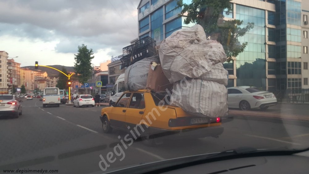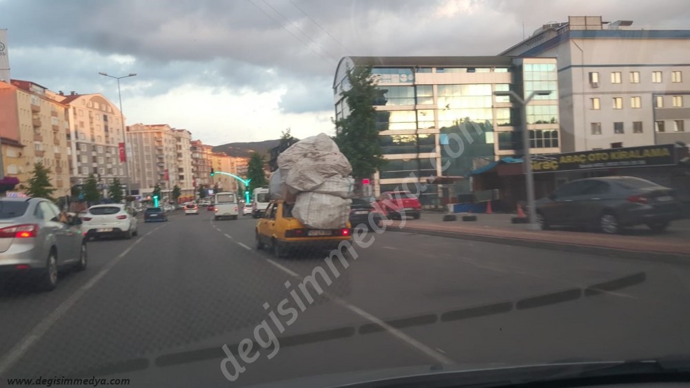 Olay ilçeye bağlı Müftü Mahallesi Şehit Ömer Halisdemir Bulvarı üzerinde meydana geldi. Bir araç araca yüklediği yükle şehir merkezinde ilerleyen otomobilin sürücüsü ve araç objektiflere yansıdı.
