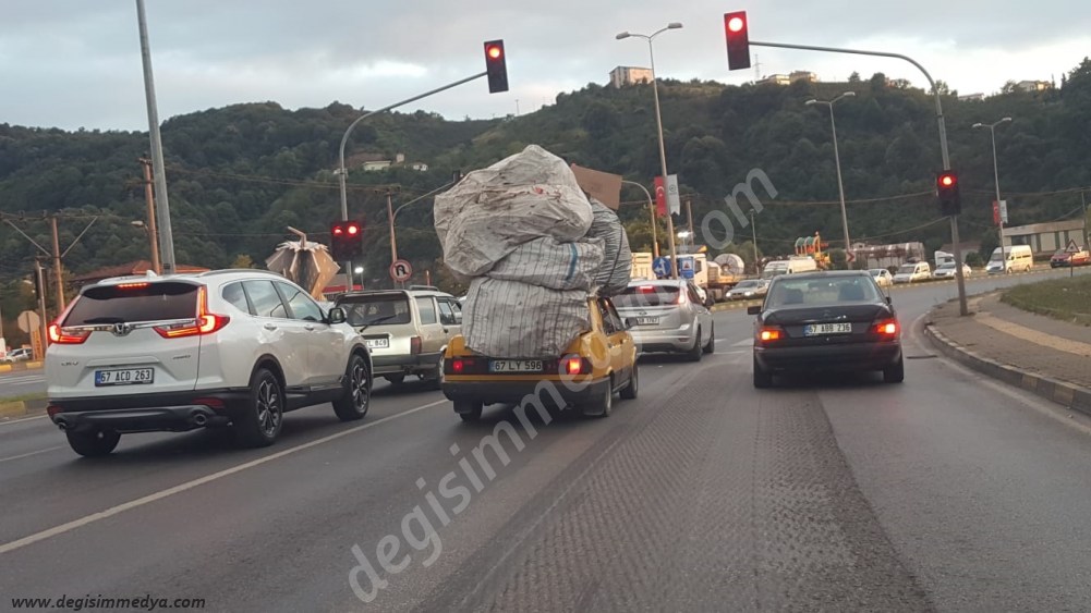 Zonguldak’ın Ereğli ilçesinde bir araca aşırı yük yükleyen araç ve sürücüsünün o anları cep telefonu ile görüntülendi.