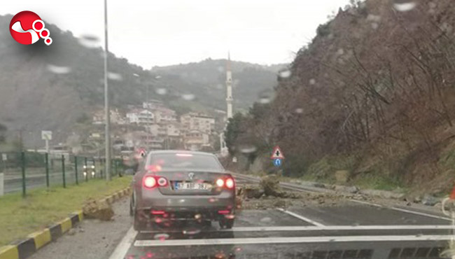 Zonguldak’ın Ereğli İlçesinde, meydana gelen heyelan nedeniyle Ereğli-Alaplı karayoluna kaya parçaları düştü.
