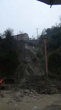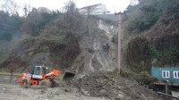 otobüslerinin otopark olarak kullandığı alana kayan heyelan molozu,