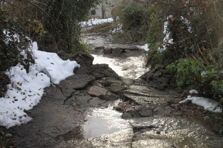 servisi heyelan nedeniyle aşağıya gelemedi. İşimiz Allah'a kaldı. Böyle çekmeye