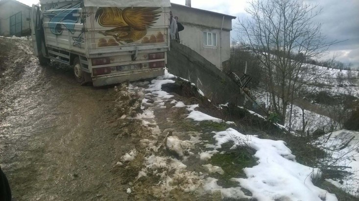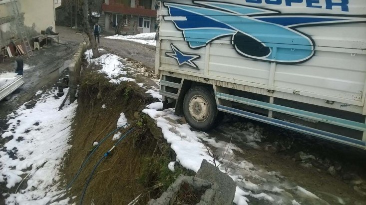 araçlar heyelan nedeniyle kaymaya başladı. Yetkililerden yardım isteyen Emirali