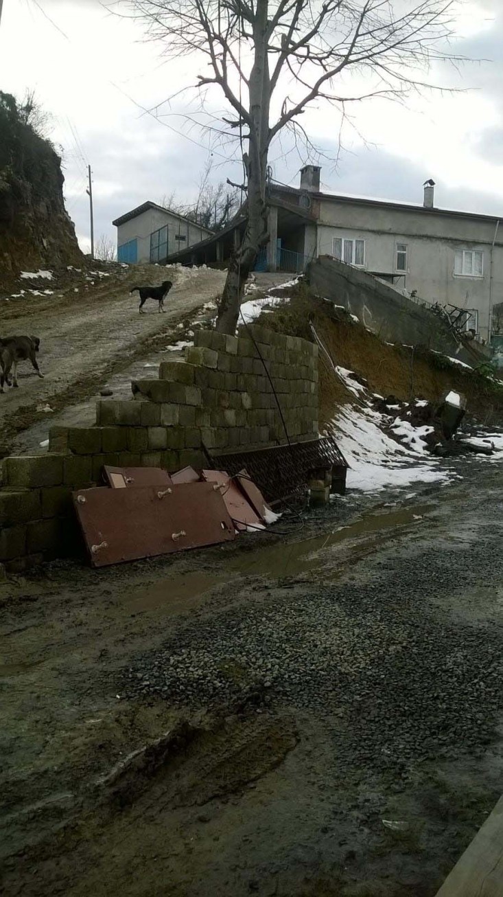 heyelan tehlikesi atlattı. Mahalle sakinleri panik anları yaşarken yolda ki