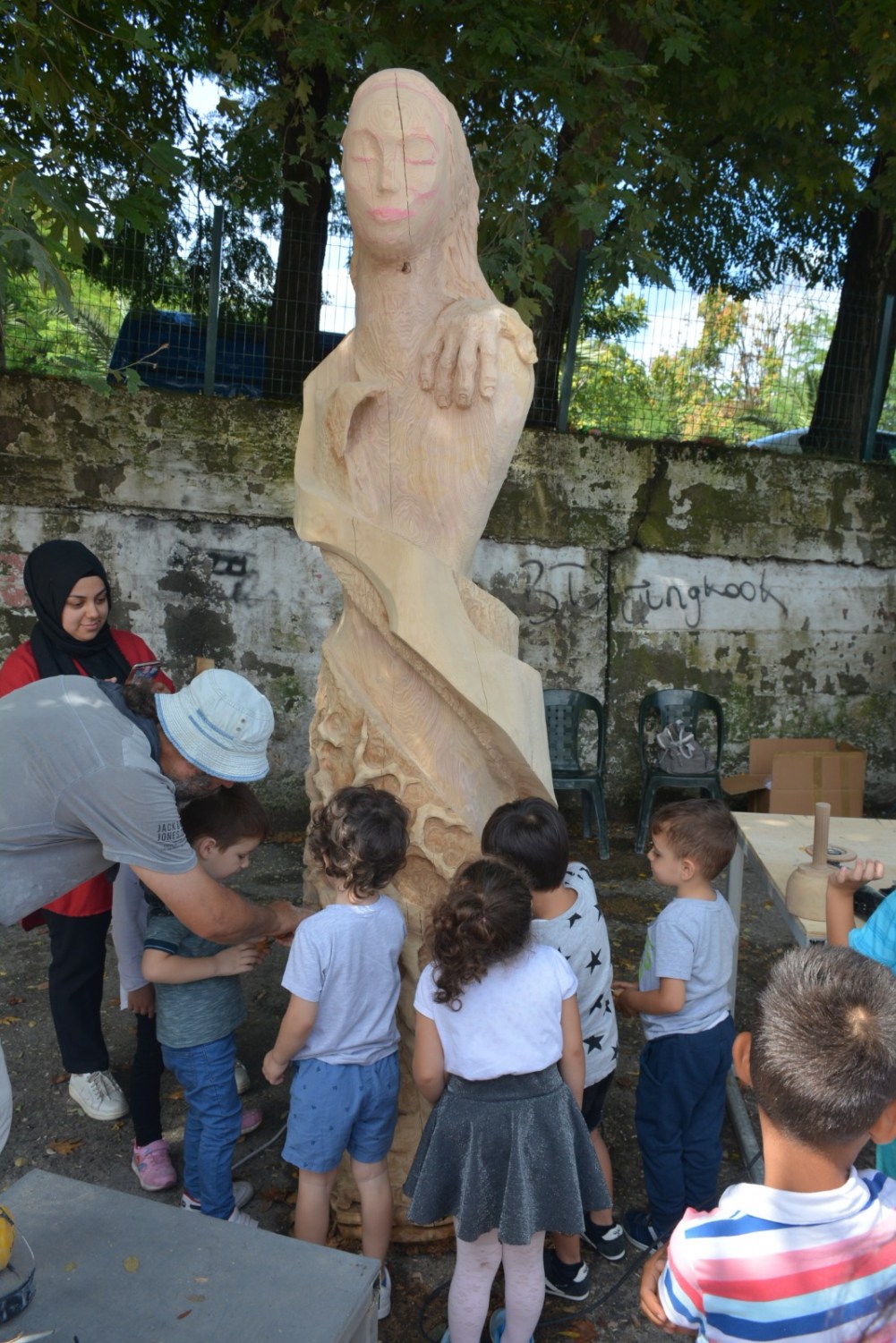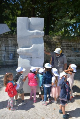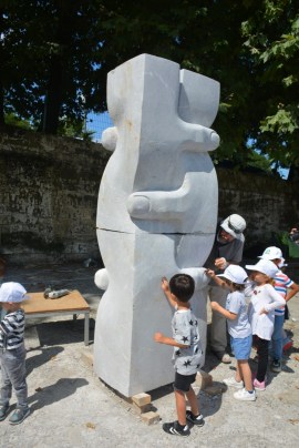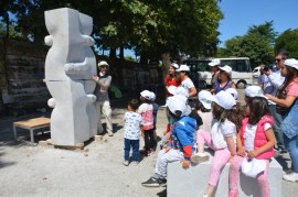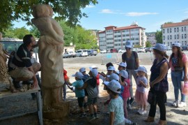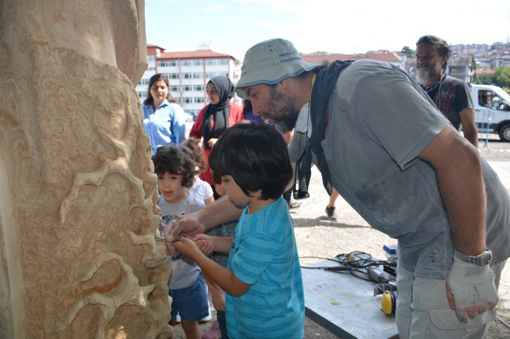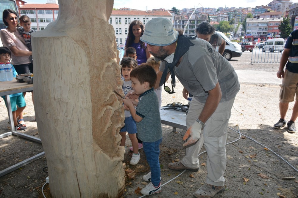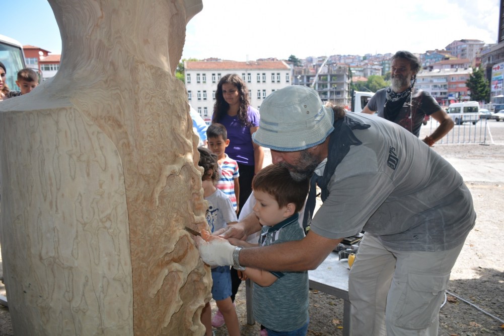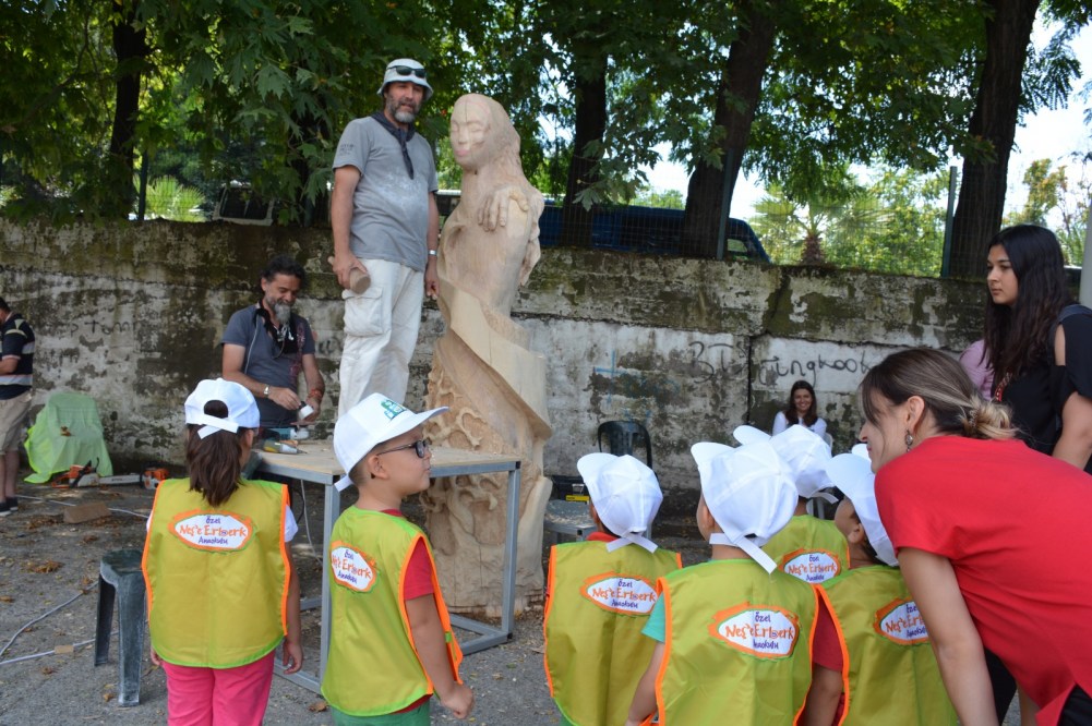 Karadeniz Ereğli Belediyesi Kreşi, Sempati Kreşi ve Neşe Erberk Anaokulu Kreşi öğrencileri ülkemizin önde gelen heykel sanatçıları Ayhan Yılmaz, Ferit Yazıcı, Okan Sabuncular ile Ahmet Özer’i önce dinledi, sonra ellerine keskileri alıp onlar da katkıda bulundu.