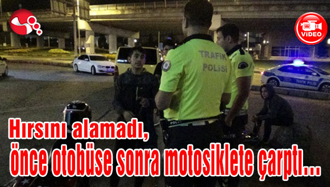 Hırsını alamadı, önce otobüse sonra motosiklete çarptı…
