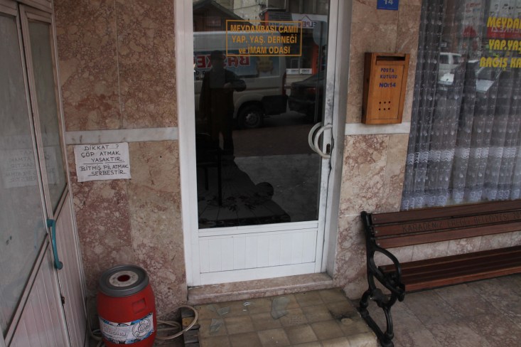 Kur'an kursu kapısından girmişler. İçerideki plastik kapıyı kırarak giriyor.