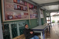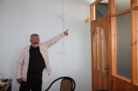 başına geldiğini söyledikten sonra hırsızların dağıttığı kulübeyi düzeltmeye