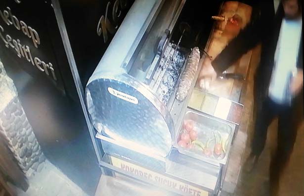 yaparak kokoreçleri çalan hırsız an be an kameralar tarafından kaydedildi.