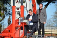 Aracın dış ekipman ve aparatlarını inceleyen Başkan Tekin, ardından merdiven kabiliyetini Taşkın ile birlikte denedi.