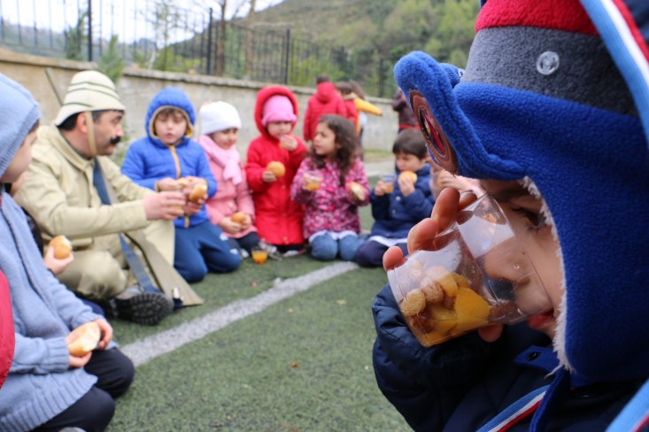 Programın son bölümünde ise öğrenciler evlerde anneleri tarafından hazırlanan üzüm hoşafını içti, kuru ekmek yedi. Askeri kıyafet giyen ve 18 Mart dönemini anlatan öğretmenlerinin etrafından toplanan öğrenciler öğretmenlerine 'Asker ağabeyler sadece üzüm hoşafı ve ekmek mi yemiş' sorusunu yöneltirken, öğretmenler ise Çanakkale zaferinin nasıl bir destan olduğunu öğrencilerine anlattı.
