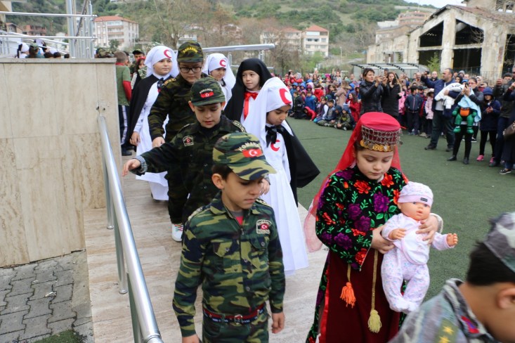 Ereğli ilköğretim okulu öğrencileri tarafından 18 Mart Çanakkale zaferinin 103. yıl dönümü dolayısıyla okul bahçesinde program düzenlendi. Öğrenciler tarafından sergilenen oratoryo gösterisi ve okunan şiirlerin ardından, yine öğrenciler tarafından cephede savaşan askerler kadınlar ve hemşireler canlandırıldı.