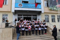 Ereğli İlkokulu bahçesinde düzenlenen programa Ereğli belediyesi meclis üyesi Fevzi Mazlum, veliler ve öğretmenler katıldı.