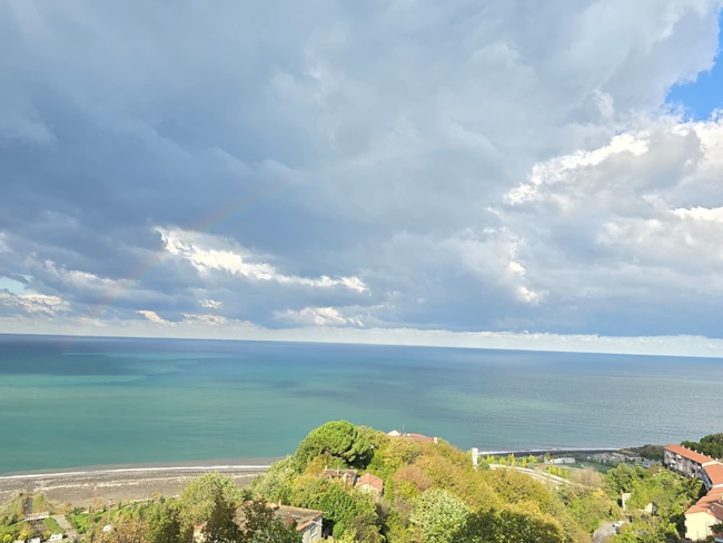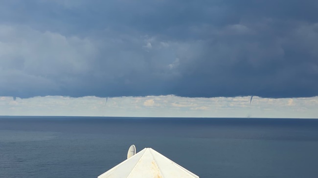 Hortumlar ve gökkuşağı bir zaman sonra gözden kaybolurken sahil boyunca denizin üzeri yağmur sonrası derelerden gelen çamurlar sebebiyle sarı rengi aldı.