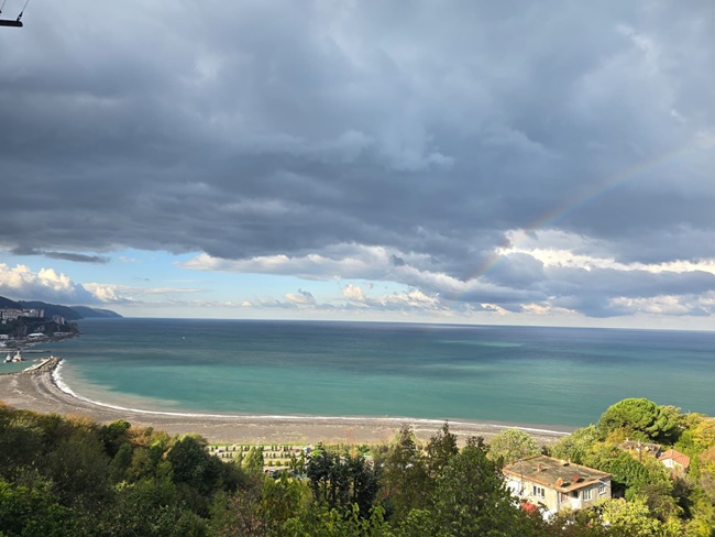 Zonguldak’ta sabah saatlerinde denizin üzerinde oluşan su hortumlarının ardından bu kez de gökkuşağı ortaya çıktı.