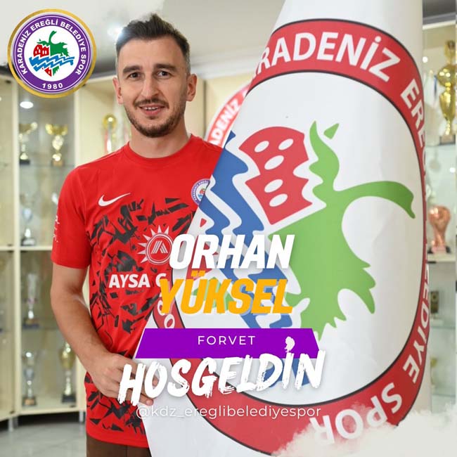 Futbolcumuz Orhan Yüksel’e kulübümüze hoşgeldin diyor, Kdz.Ereğli Belediyespor forması altında kendisine başarılı bir kariyer diliyoruz” denildi