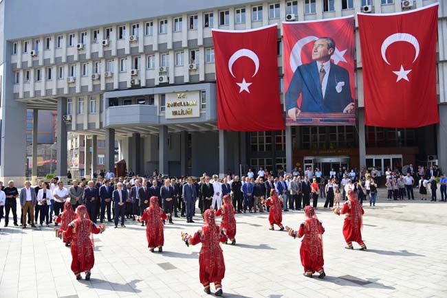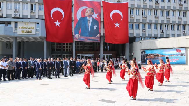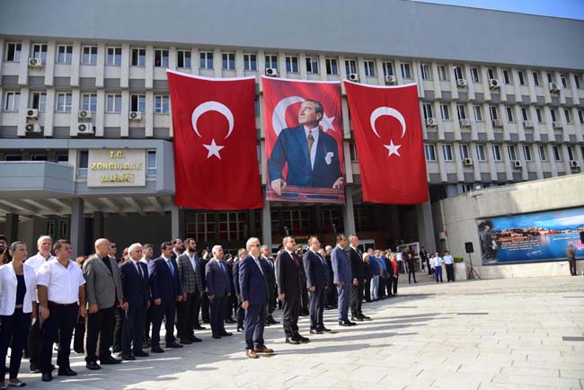 Valilik binasındaki törene, Zonguldak Valisi Mustafa Tutulmaz, Belediye Başkanı Selim Alan, Milletvekilleri Ahmet Çolakoğlu, Hamdi Uçar, Ünal Demirtaş, GMİS Genel Başkanı Hakan Yeşil, siyasi parti temsilcileri, sivil toplu kuruluşları temsilcileri, daire amirleri katıldı.