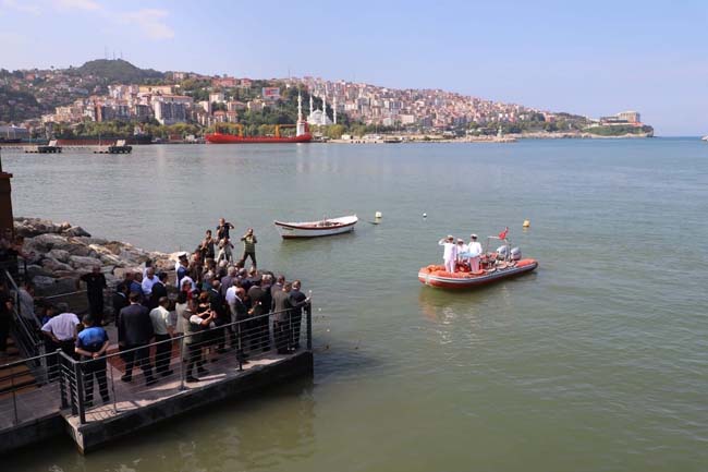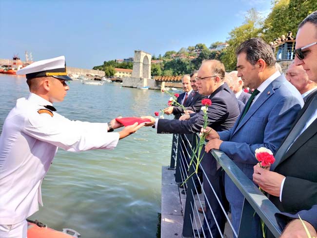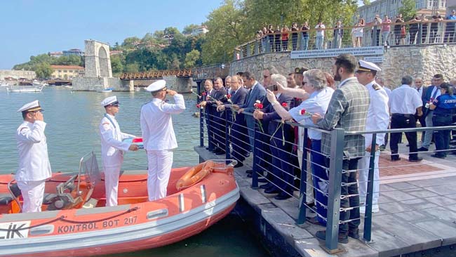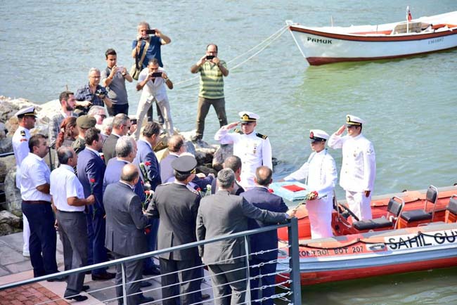 Tören sonrası Atatürk'ün ayak bastığı iskeleye giden protokol üyeleri, Sahil Güvenlik Komutanlığı'na bağlı personelin denizden getirdiği Türk Bayrağı'nı teslim aldı. Program; denize karanfil bırakılmasıyla son buldu.